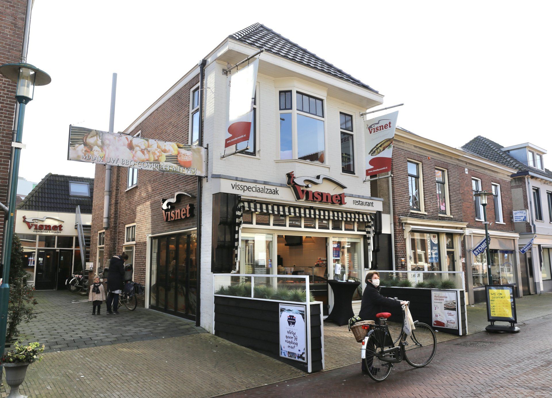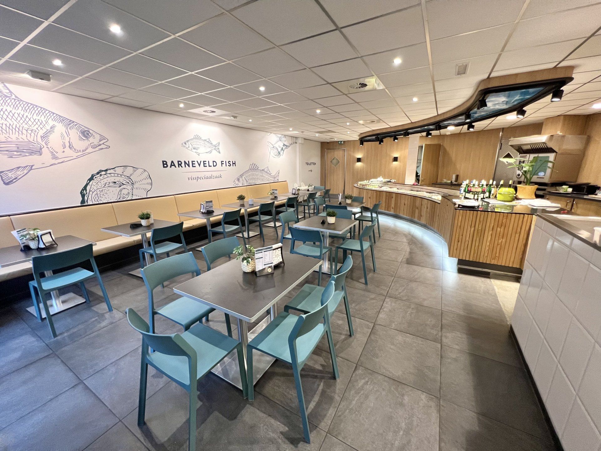 De nieuwe eigenaar van deze viswinkel wilde zowel het exterieur als het interieur een nieuwe look geven. Een onwijs leuke uitdaging! Ik heb gekozen voor een Scandinavische sfeer met licht eikenhout en de kleur petrol. De gehele pui aan de buitenkant kreeg een nieuw jasje van eikenhouten latten. Om het geheel wat frisser te maken, heb ik de stenen buitenmuur wit laten schilderen. De kozijnen zijn antraciet geschilderd en de winkel is voorzien van een nieuw hip logo. Door de gehele toonbank te bekleden met dezelfde eikenhouten latten als het exterieur is het interieur drastisch veranderd. Binnen was het nogal donker door de donkerrode muren, daarom heb ik gekozen voor wit wandfolie welke speciaal ontworpen is met vissen en het bedrijfslogo. Doordat het hierdoor een stuk lichter is geworden, lijkt het optisch veel groter. Om het geheel wat moderner te maken, zijn de oude bruine stoelen vervangen door mooie design petrolkleurige stoelen. Een zeer geslaagde restyling!