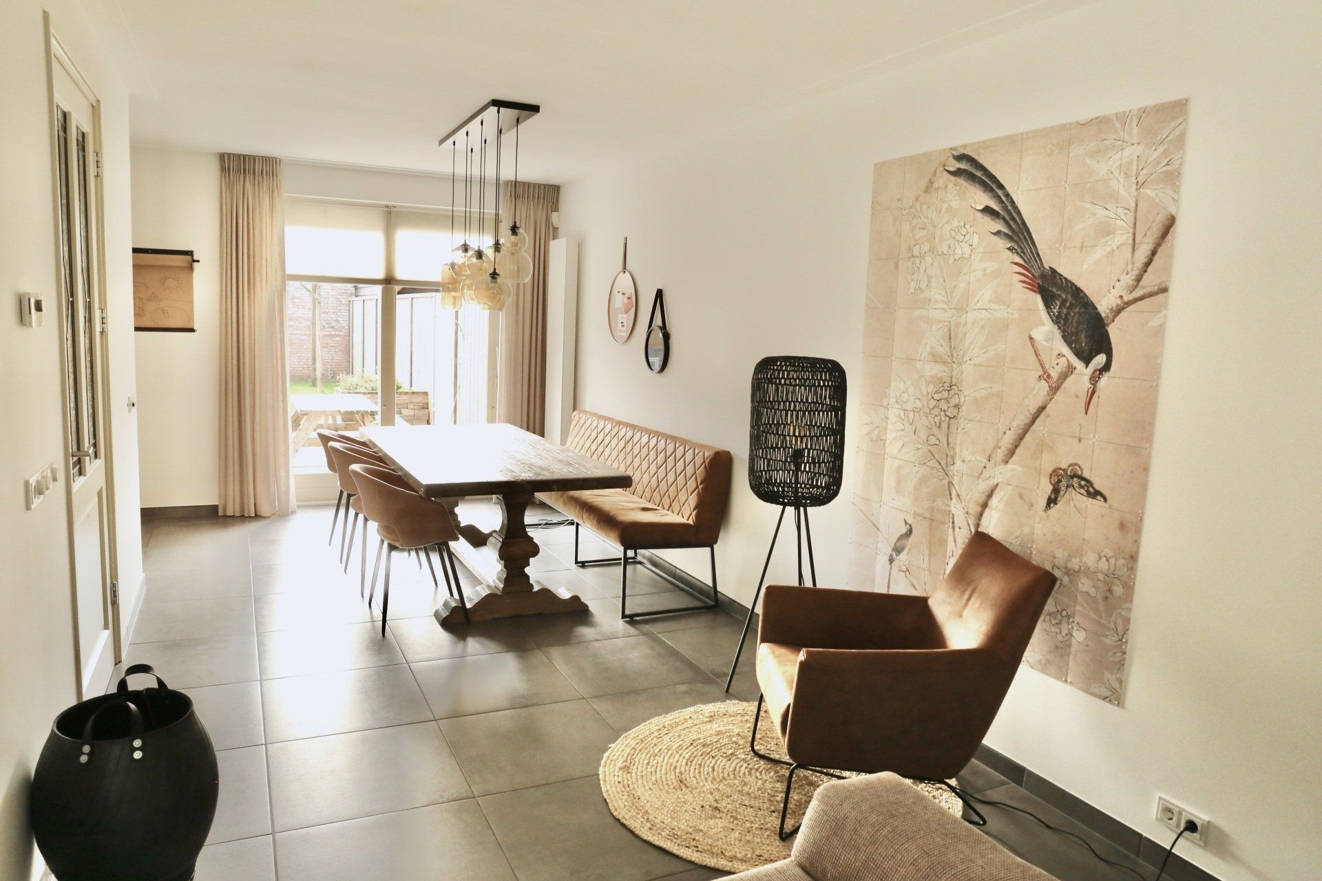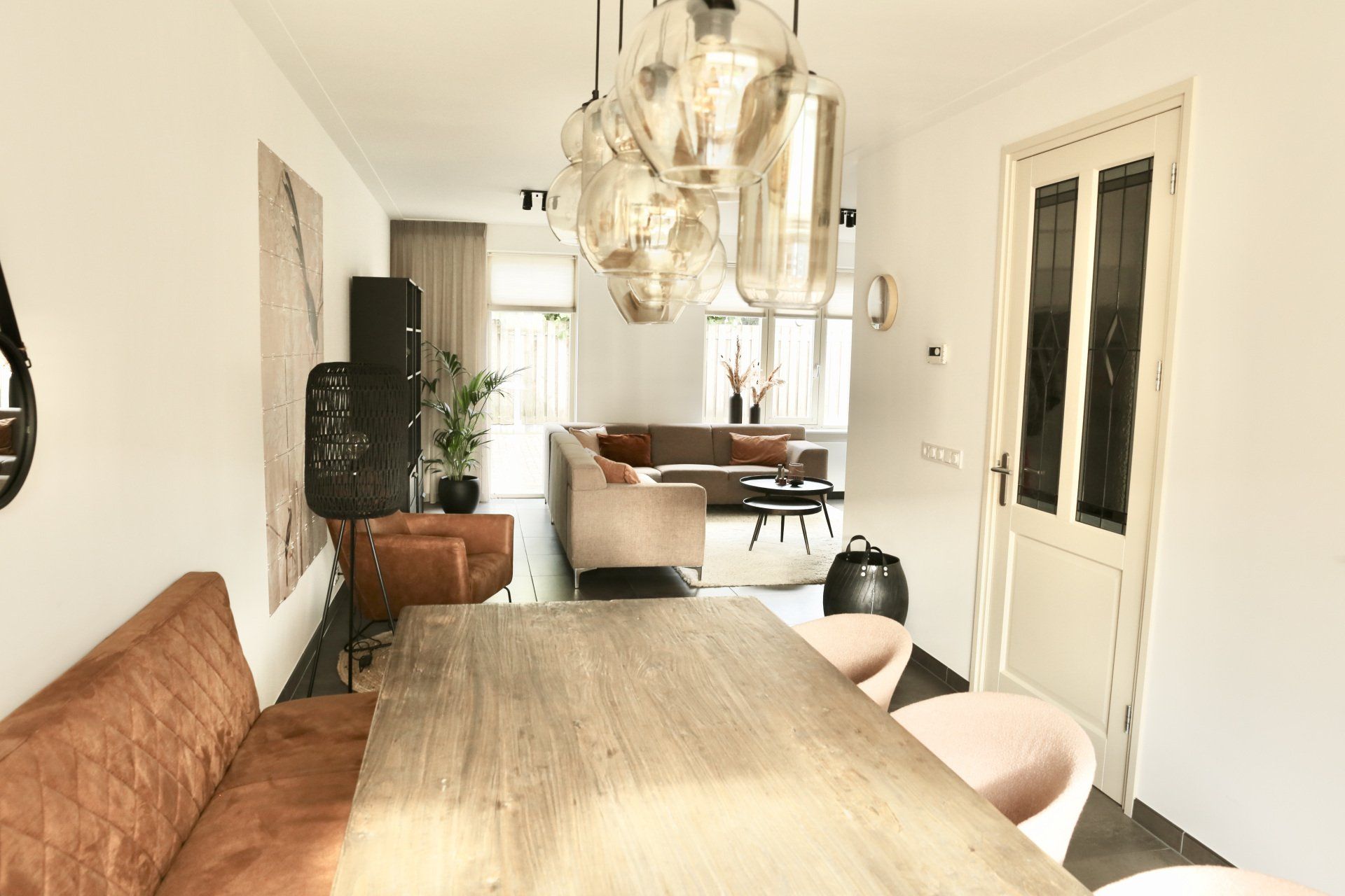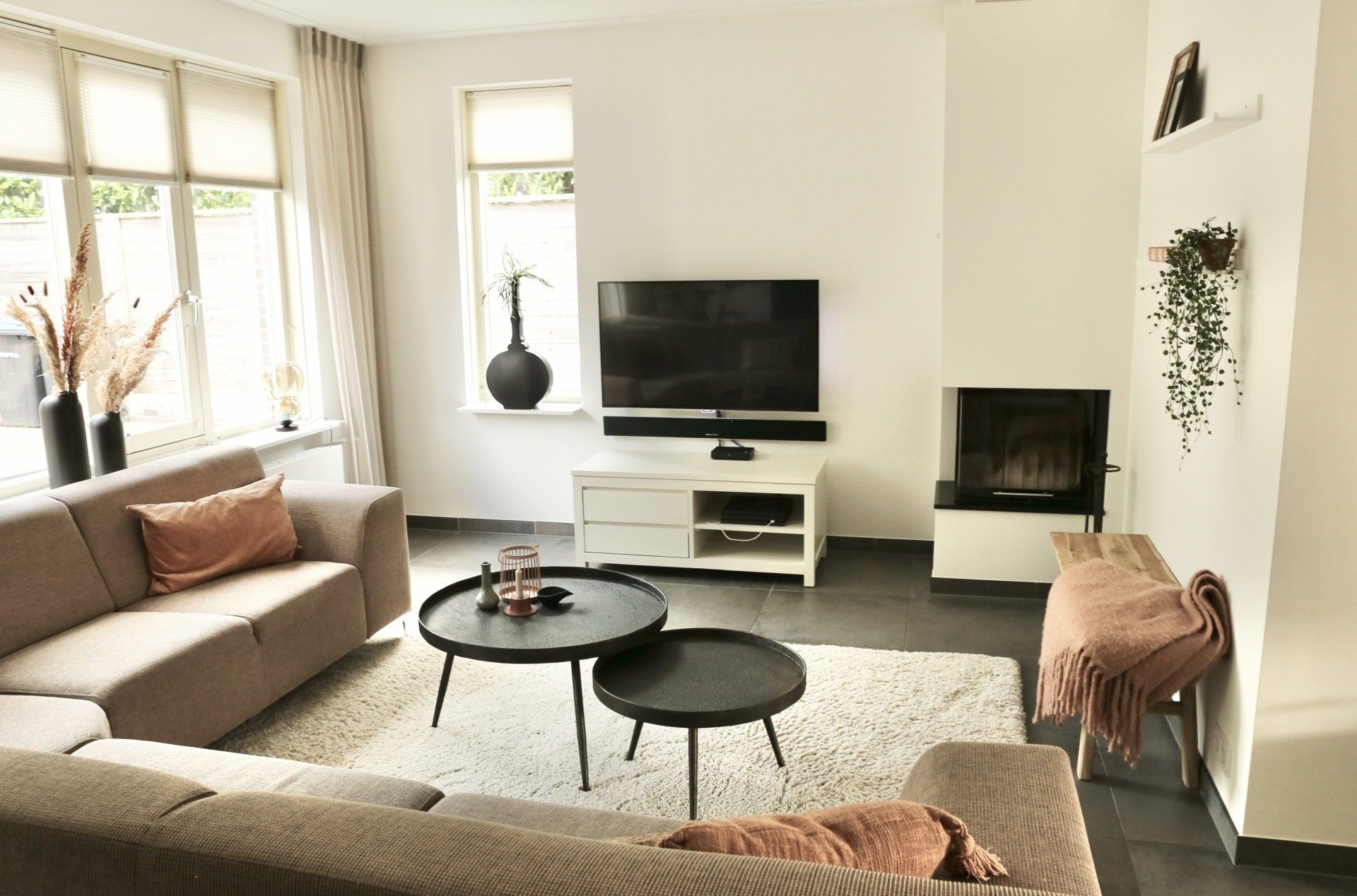 De wens van deze familie was een woonkamer waar de kleur roze zeker niet mocht ontbreken. Ook wilde dit gezin een woonkamer waar meer rust gecreëerd werd. Ik heb hier gekozen om de hoekbank naar het midden van de woonkamer te verplaatsen. Zo lijkt het optisch ruimtelijker en verkrijg je een knusse sfeer, omdat je zo dichter bij de openhaard zit. De eettafel stond in de oude situatie in de breedte van de woonkamer. Ik heb deze in de lengte van de woonkamer verplaatst, zodat je hier makkelijker omheen kan lopen. De ruimte lijkt hierdoor ook veel groter. Doordat ik het kleurenpalet van roze, beige en aardetinten gebruikt heb, is er meer rust en warmte in huis ontstaan. Het is een gezellige woonkamer geworden waar deze bewoners zeer blij mee zijn!